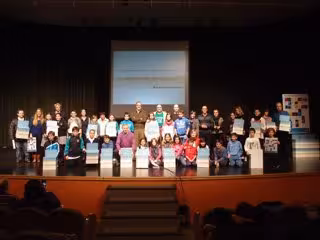 La concejal de Familia y Política Social, Paloma Corres, ha presidido en el Auditorio un acto en el que han participado una veintena de colegios de la ciudad a los que el Ayuntamiento de Logroño ha hecho entrega de un buzón de sugerencias que se instalará en cada centro y en el que los alumnos podrán introducir sus sugerencias e ideas para la ciudad de Logroño.