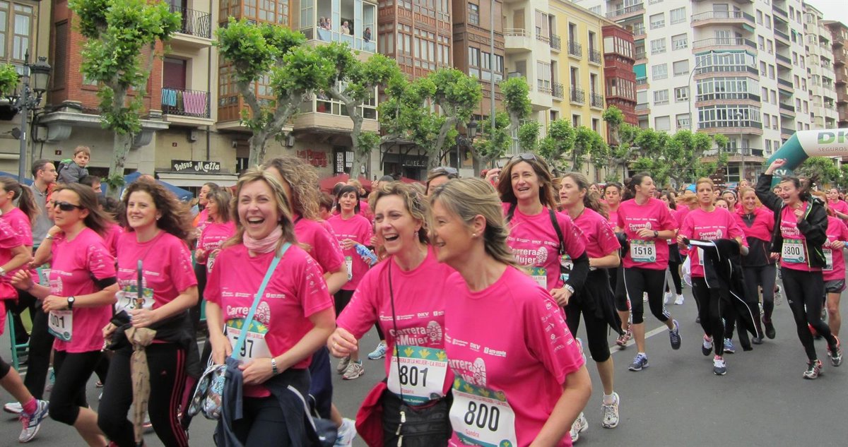 Más de 4.000 mujeres han tomado hoy el centro de Logroño para participar en la I Carrera de la Mujer para mostrar "su solidaridad" en la lucha contra el cáncer de mama y disfrutar de una jornada lúdica con diferentes actividades en la plaza del Ayuntamiento.