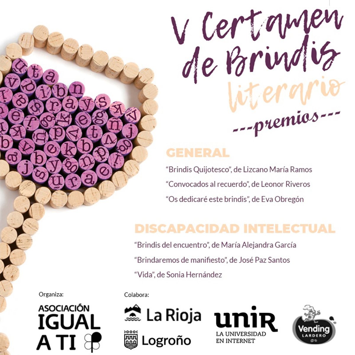 La quinta edición del Certamen Internacional Brindis Literario ha recibido un total de 1.004 textos procedentes de varios países. Este certamen organizado por la Asociación IGUAL A TI es una iniciativa asentada en los cimientos de la inclusión social que establece dos categorías (general y discapacidad intelectual) con los mismos premios en cada una de ellas: 1.000 euros para el primer premio, 500 para el segundo y 200 para el tercero.