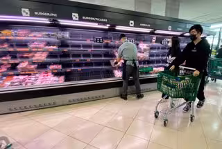 Una pareja con rasgos asiáticos y protegidos con mascarilla realizan la compra en un supermercado - Eduardo Parra - Europa Press - Archivo