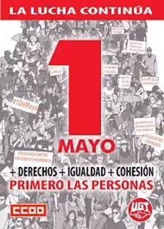 Los sindicatos UGT y Comisiones Obreras han hecho hoy un llamamiento doble, de cara al Primero de Mayo, para que los trabajadores salgan a la calle y el nuevo gobierno, tras las elecciones del pasado 28 de abril, deroge las dos últimas reformas laborales y cambie el modelo productivo.
