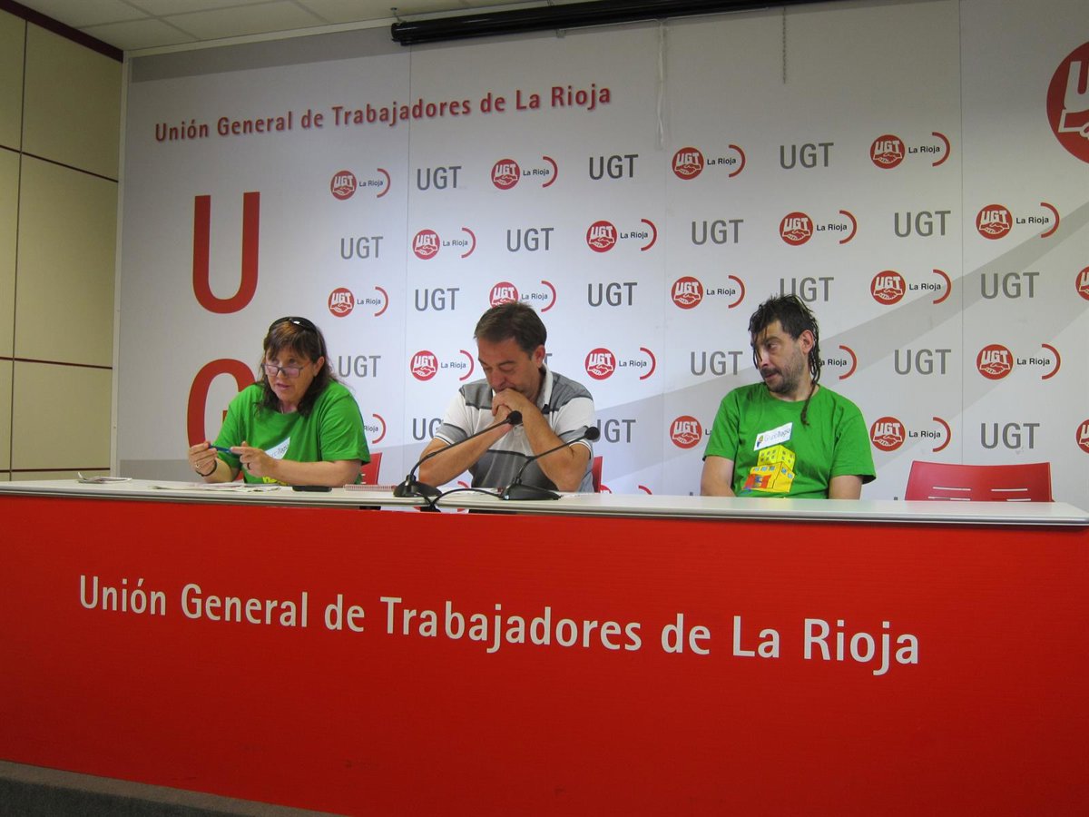 El secretario general de MCA-UGT de La Rioja, Carlos Alfaro; la presidenta del comité de empresa de Tragsa y trabajadora despedida, Claudia Martín; y el delegado, y miembro del comité de CCOO y trabajador despedido, Julián Ávalos, han informado esta mañana sobre "la constatación de que los despidos ejecutados en Tragsa han sido injustificados".