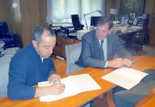 El consejero de Agricultura, Ganadería y Medio Ambiente, Íñigo Nagore, y el presidente de la Federación Riojana de Pesca, Juan Antonio Villoslada, han suscrito un convenio de colaboración por el cual el Gobierno de La Rioja destinará 7.200 euros a la realización de actividades encaminadas a la formación del pescador para la obtención de la licencia de pesca de La Rioja.