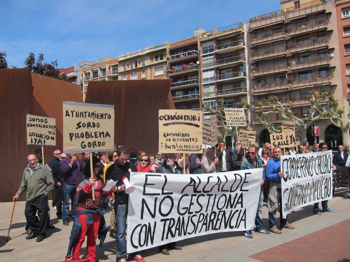 La concentración ha comenzado pasadas las 12,30 horas de este domingo y tras unas pancartas en las que se podía leer "El alcalde no gestiona con transparencia" y "Gobierno 'callao', Gobierno 'implicao'", los vecinos de la localidad han proliferado gritos como "Gobierno escucha, Ochánduri en lucha" o "alcalde dimisión".