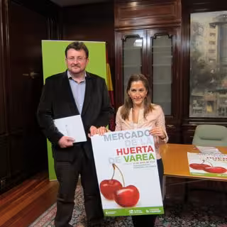 La directora general de Turismo de La Rioja, Mónica Figuerola, y el responsable de I+D de la Fundación Caja Rioja, Francisco Burgos, han presentado esta mañana una nueva edición del Mercado de la Huerta de Varea, que se llevará a cabo el próximo domingo, de 10 a 14 horas, en el Polideportivo Municipal de dicho barrio logroñés. En esta ocasión abren la iniciativa a otros productos como la miel, queso o artesanía.