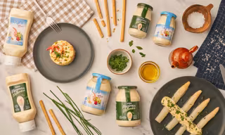 Mercadona, compañía de supermercados físicos y de venta online, ha renovado la receta de las seis mayonesas de su marca propia, Hacendado, que elabora en La Rioja; para mejorar su sabor, eliminando acidez; mejorar su textura, haciéndola más densa; y para reducir azúcares y eliminar conservantes; añadiendo aromas naturales.