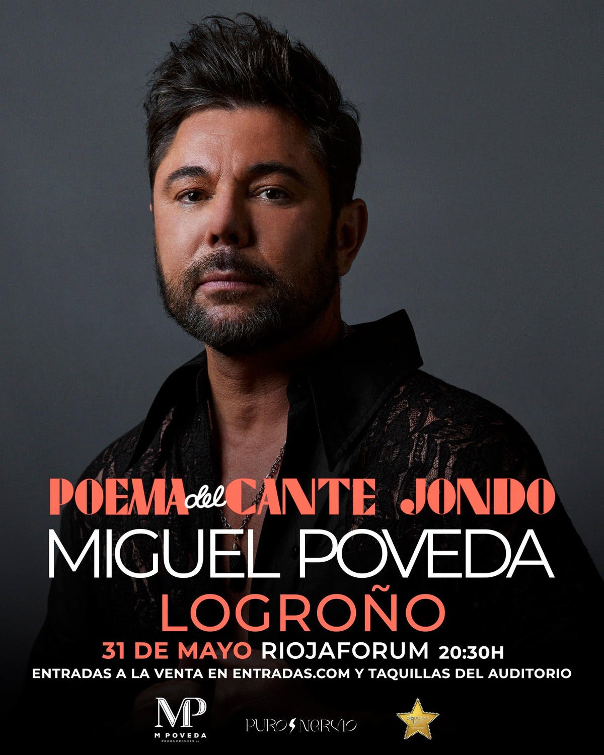 Miguel Poveda ofrecerá un concierto en Logroño para presentar su nuevo trabajo, 'Poema del cante jondo', en una cita que será el 31 de mayo, a partir de las 20,30 horas, en Riojafórum. Las entradas están disponibles en entradas.com y taquillas del Auditorio.