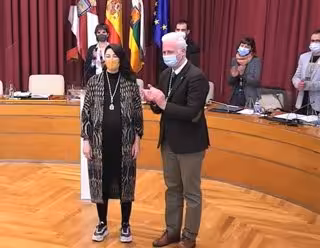 Tras imponerle el alcalde de Logroño, Pablo Hermoso de Mendoza, el distintivo de su cargo como concejala, ha sido el presidente del pleno, Francisco Javier Pérez Diego, quien le ha dado la bienvenida en su nuevo cargo, "deseando que sea de su agrado el debate que aquí mantengamos ahora y en el futuro".