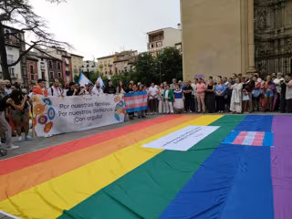Una multitudinaria concentración, convocada por la Asociación Gylda, se ha desarrollado, pasadas las 20,00 horas, en la plaza del Mercado de Logroño, para mostrar sus rechazo por las agresiones homófobas sufridas por varios miembros del colectivo durante las celebraciones del Día Internacional del Orgullo LGTBI+ en la capital riojana el pasado fin de semana.
