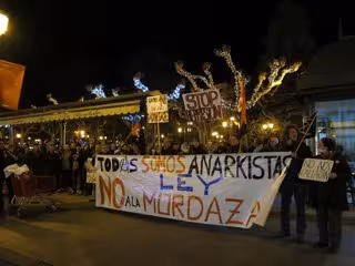 Los concentrados han portado dos pancartas, una en la que se leía 'Todos somos anarquistas. No a la Ley Mordaza' y otra que decía 'Libertad anarquistas detenidos. Terrorista es el Estado'. Además, en varios carteles se podía leer 'Caza de Brujas a los movimientos sociales', 'No a la Ley Mordaza' o 'Llevar pancartas, 7 años (de cárcel)', entre otras.