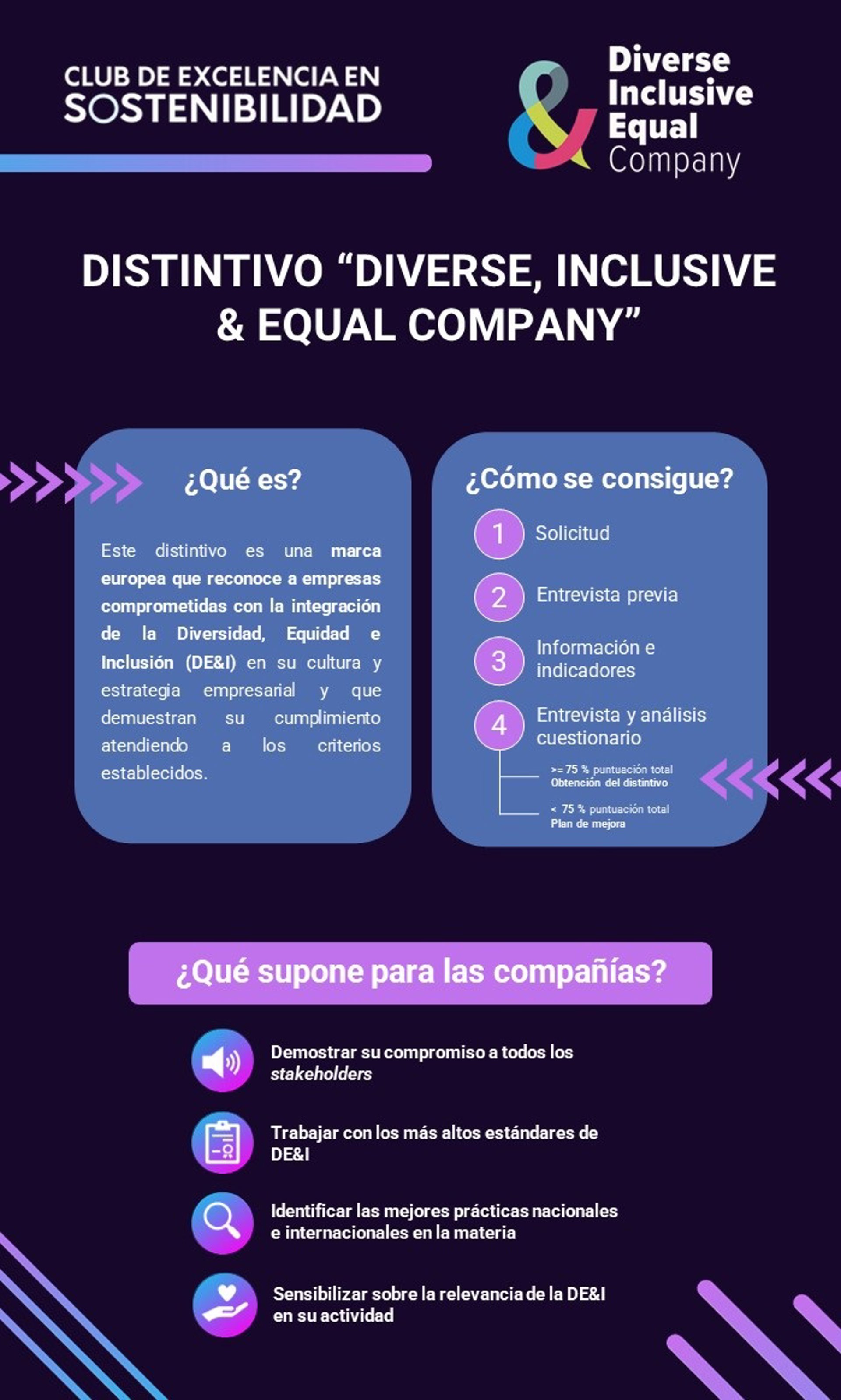 El Club de Excelencia en Sostenibilidad, en su intención de reconocer la buena práctica de los criterios DE&I, ha desarrollado un distintivo para las compañías riojanas bajo el nombre 'Diverse, Inclusive & Equal Company'.