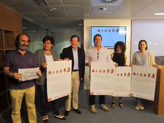 El consejero de Industria, Innovación y Empleo, Javier Erro, y la concejala de Cultura de Navarrete, Eva Hurtado Gómez, acompañados por el alfarero y presidente del Colectivo de Artesanos de La Rioja, Toño Naharro, el galerista Enrique Martínez Glera y Bibiana Fernández, representante de la escuela Enric Mestre, han presentado esta mañana en rueda de prensa esta nueva edición de NACE.