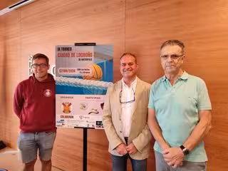 El presidente de Logroño Deporte, Francisco Iglesias, junto con Juan Antonio Moreta y Álvaro Fernández, presidente y coordinador deportivo del Waterpolo Club Logroño, respectivamente, ha presentado esta mañana el IX Torneo de Waterpolo Ciudad de Logroño. El torneo, organizado por el Waterpolo Club Logroño, se celebrará el sábado 7 de septiembre, a partir de las 11,00 horas y hasta las 20,00 horas, en la piscina olímpica de Las Norias y estará abierto al público.