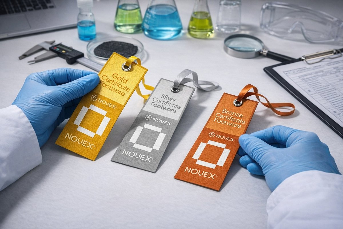 NOVEX ha creado sus propios reconocimientos, verificables, reconocibles y confiables, que son el resultado de diferentes procedimientos internos, avalados por el conocimiento de sus técnicos y en base a la aplicación de las correspondientes normativas específicas, permitiendo así certificar la seguridad y calidad de los productos; en este caso calzado.