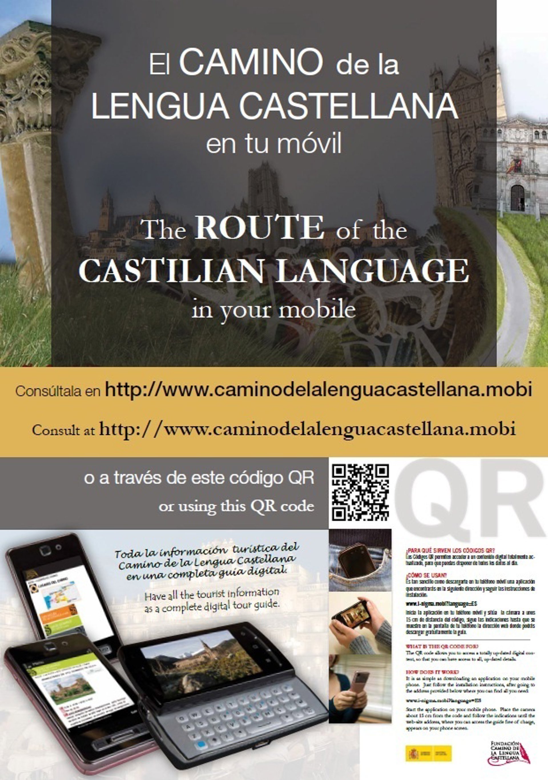 El contenido de la guía se ha desarrollado tanto en castellano como en inglés, con el fin de darle una proyección más internacional al producto. La guía y el código QR se difundirán en la feria de turismo FITUR, así como en las Oficinas de Turismo de las localidades de la ruta. Además, el código se colgará también en la web de la Fundación Camino de la Lengua Castellana, www.caminodelalengua.com, y se difundirá a través de las redes sociales.