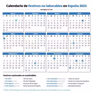 La relación de nueve festividades comunes a todo el país en 2023 es la siguiente: