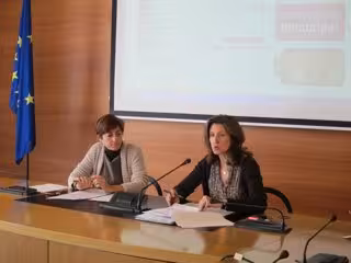 La concejal de Hacienda y Administración Pública, Mar San Martín, junto con la concejal de Comercio, Cultura y Turismo, Pilar Montes, han presentado este martes el nuevo sistema de 'Cita Previa', puesto en marcha por el Ayuntamiento de Logroño, con el fin de "acercar la gestión municipal al ciudadano".