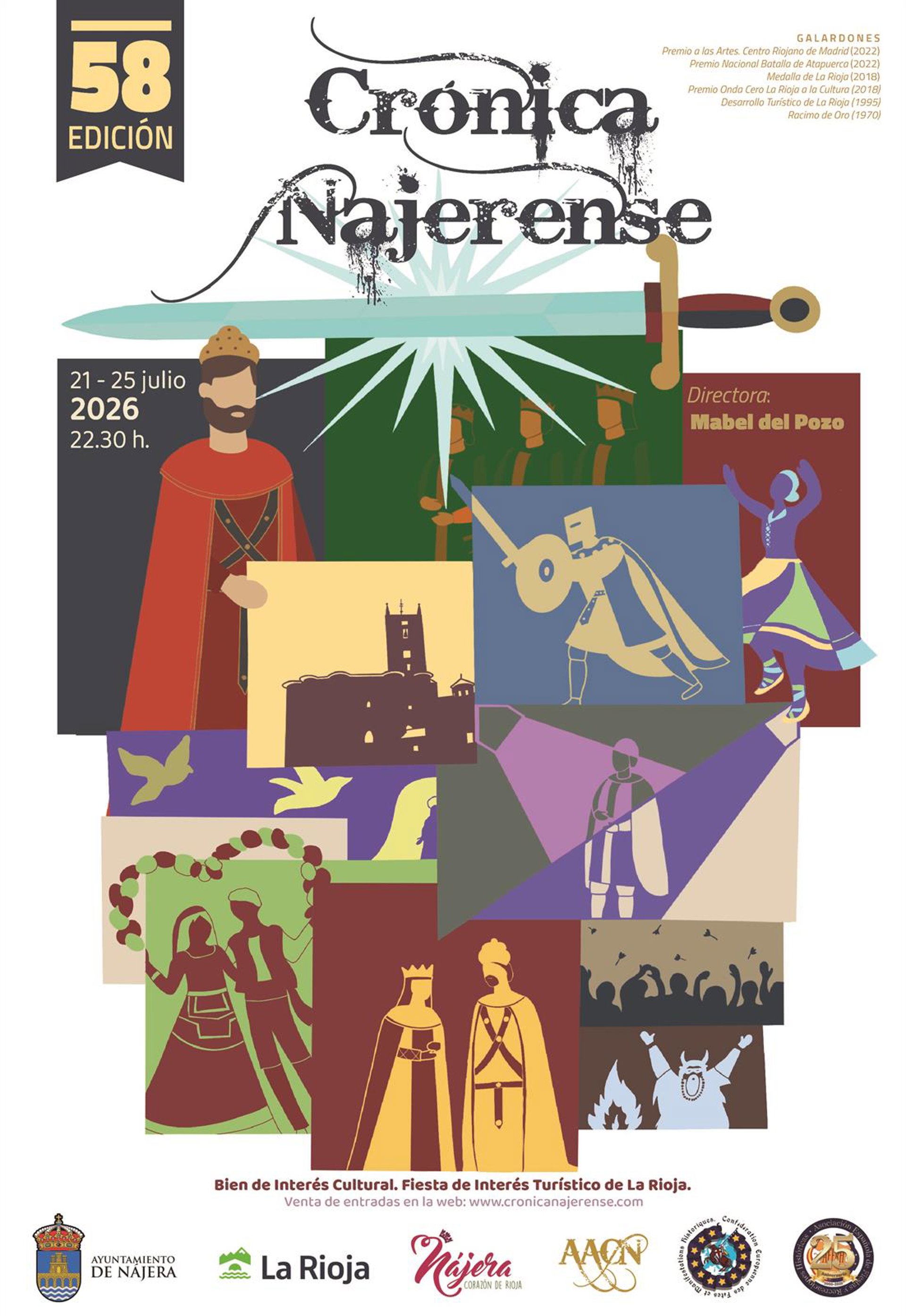 'Nájera. El pasado, late aquí' es el título del cartel que será la imagen de la 58 edición de 'Crónica Najerense', que se celebrará del 21 al 25 de julio de 2026. La obra es de Elsa Fernández Acha, una joven de la propia localidad y estudiante de 2º curso en la Escuela Superior de Diseño de La Rioja -ESDIR-.