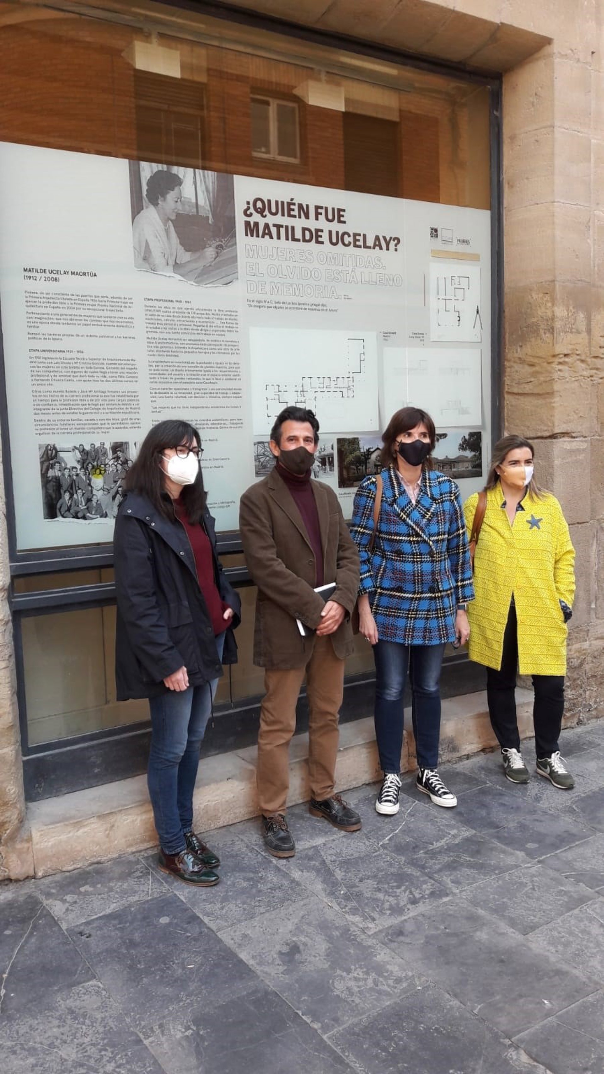 Junto a Eva Tobías Olarte han participado en la visita el decano del COAR, Ángel Carrero, y las arquitectas responsables de la muestra.