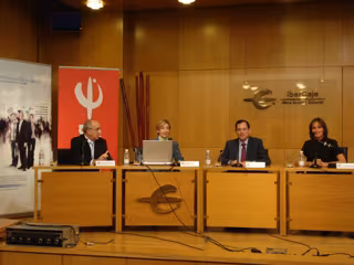 La programación de "Iniciativa Emplea" ha sido presentada esta mañana en el Centro Ibercaja La Rioja por Teresa Fernández, directora de la Obra Social de Ibercaja; Javier Erro, Consejero de Industria, Innovación y Empleo del Gobierno de La Rioja; José Luis Ollero, Director Territorial Ibercaja La Rioja, y Mayte Ciriza, directora del Centro Ibercaja La Rioja.