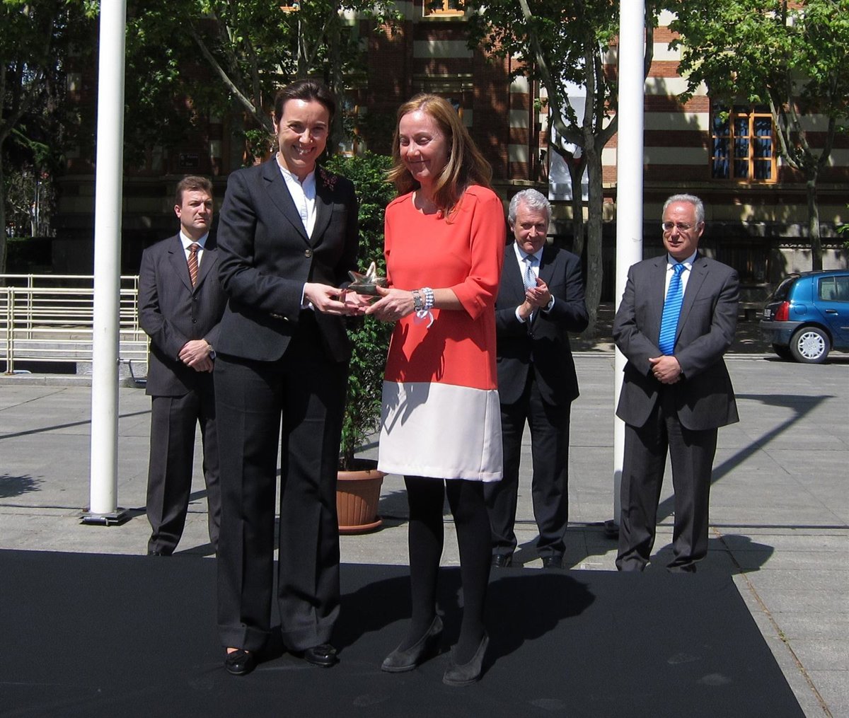 La encargada de la Oficina de La Rioja en Bruselas, Marta Romo, ha recibido este miércoles de manos de la alcaldesa de Logroño, Cuca Gamarra, la Estrella de Europa, concedida por el Consistorio a este organismo por su "defensa de los intereses riojanos" ante las instituciones europeas.