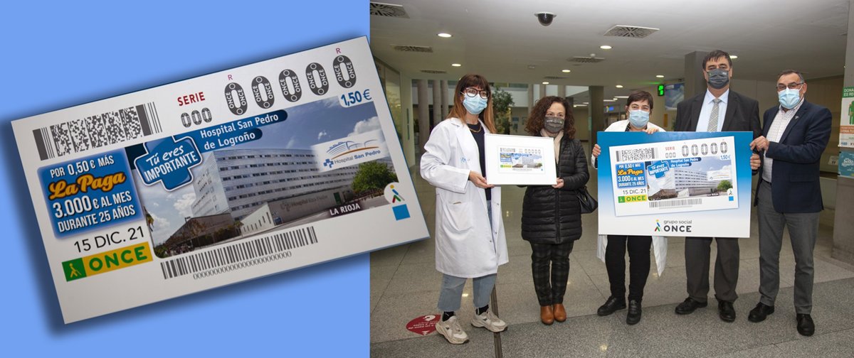 La ONCE dedica su cupón del miércoles, 15 de diciembre, al hospital San Pedro, dentro de la serie 'Tú eres importante', con la que rinde homenaje a quienes trabajan en los centros hospitalarios. Cinco millones y medio de cupones difundirán la imagen de este hospital de Logroño.