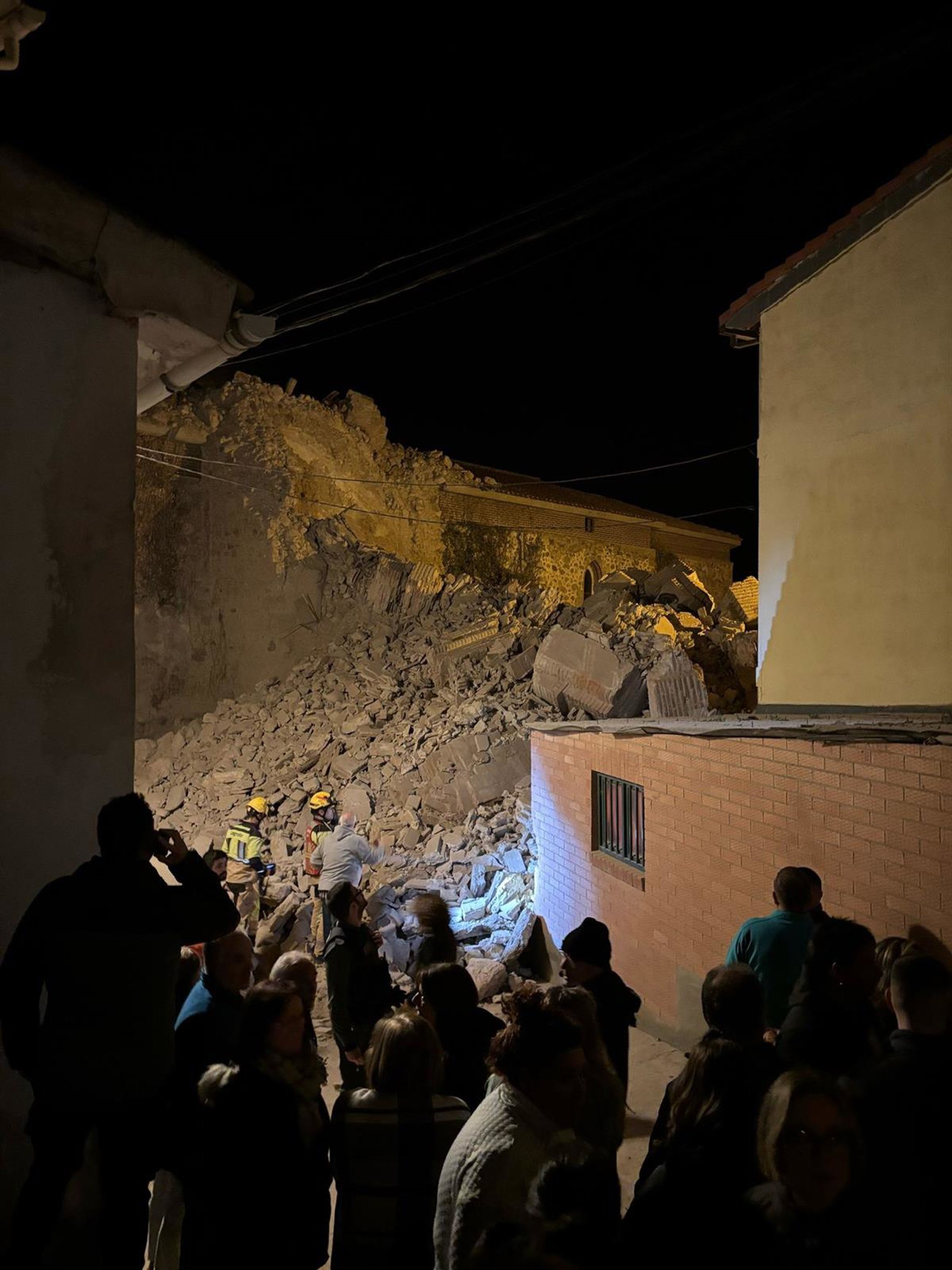 Hasta once viviendas han sido desalojadas, y veinte personas realojadas, tras el derrumbe de la torre de la iglesia de Viguera, tal y como ha informado el SOS Rioja.