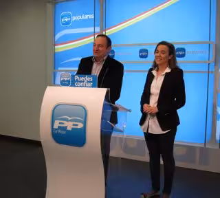 El presidente del PP de La Rioja, Pedro Sanz, acompañado de la candidata a la alcaldía, Cuca Gamarra, han presentado este sábado, 30 de abril, su compromiso de "impulsar el soterramiento" garantizando "buscar la financiación que garantice que este proyecto de ciudad, sea realidad y no se convierta en una consecuencia de la negligencia del Partido Socialista".