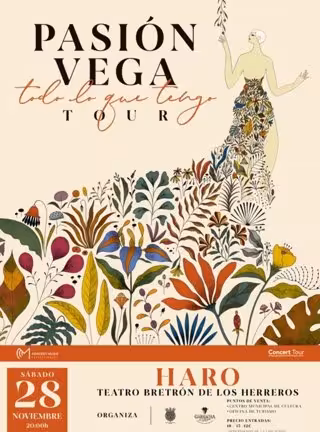 Ahora, Pasión Vega, después de actuar por los principales teatro de España, como el Teatro Real de Madrid, el Gran Liceo de Barcelona o el Teatro de la Maestranza de Sevilla, se presenta en el Teatro Bretón de los Herreros de Haro para traer parte de su arte al escenario jarrero, inaugurando la XXIII edición del Certamen Nacional de Teatro Garnacha de Rioja, Haro 2020.