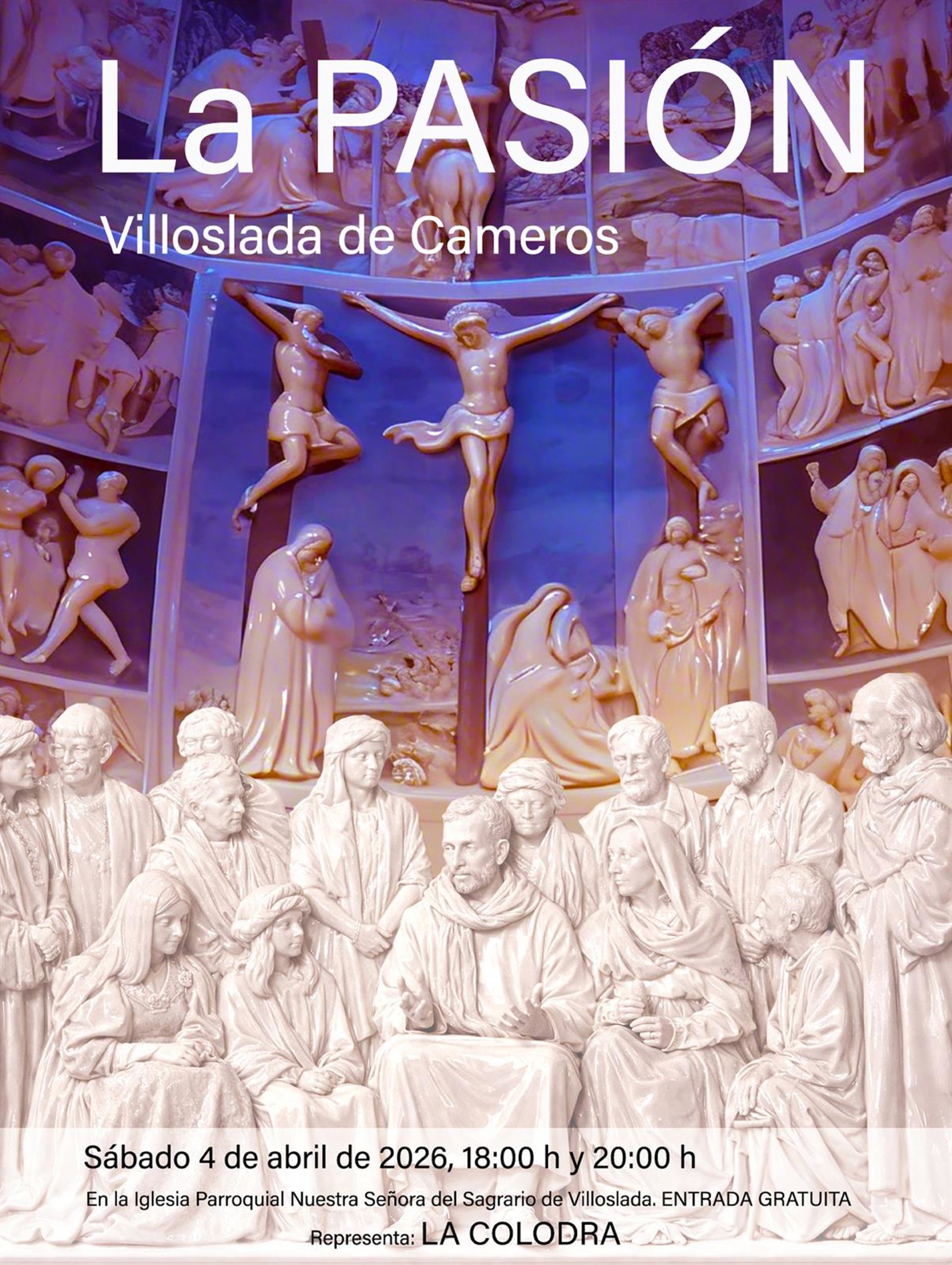 La Pasión es una obra original, escrita y dirigida por Virginia Muela, en la que participan más de cuarenta personas del propio municipio entre elenco y equipo técnico, "reflejo del compromiso del pueblo de Villoslada que hace posible este proyecto cultural".
