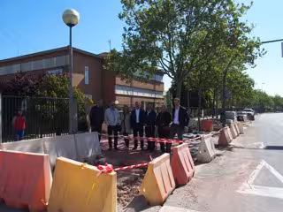 Los concejales de Transporte Urbano, Tráfico y Vías Urbanas, Francisco Iglesias, y del distrito Este, Miguel Sáinz, han visitado las obras de mejora de la seguridad vial en la calle Madre de Dios a la altura del colegio Caballero de la Rosa.