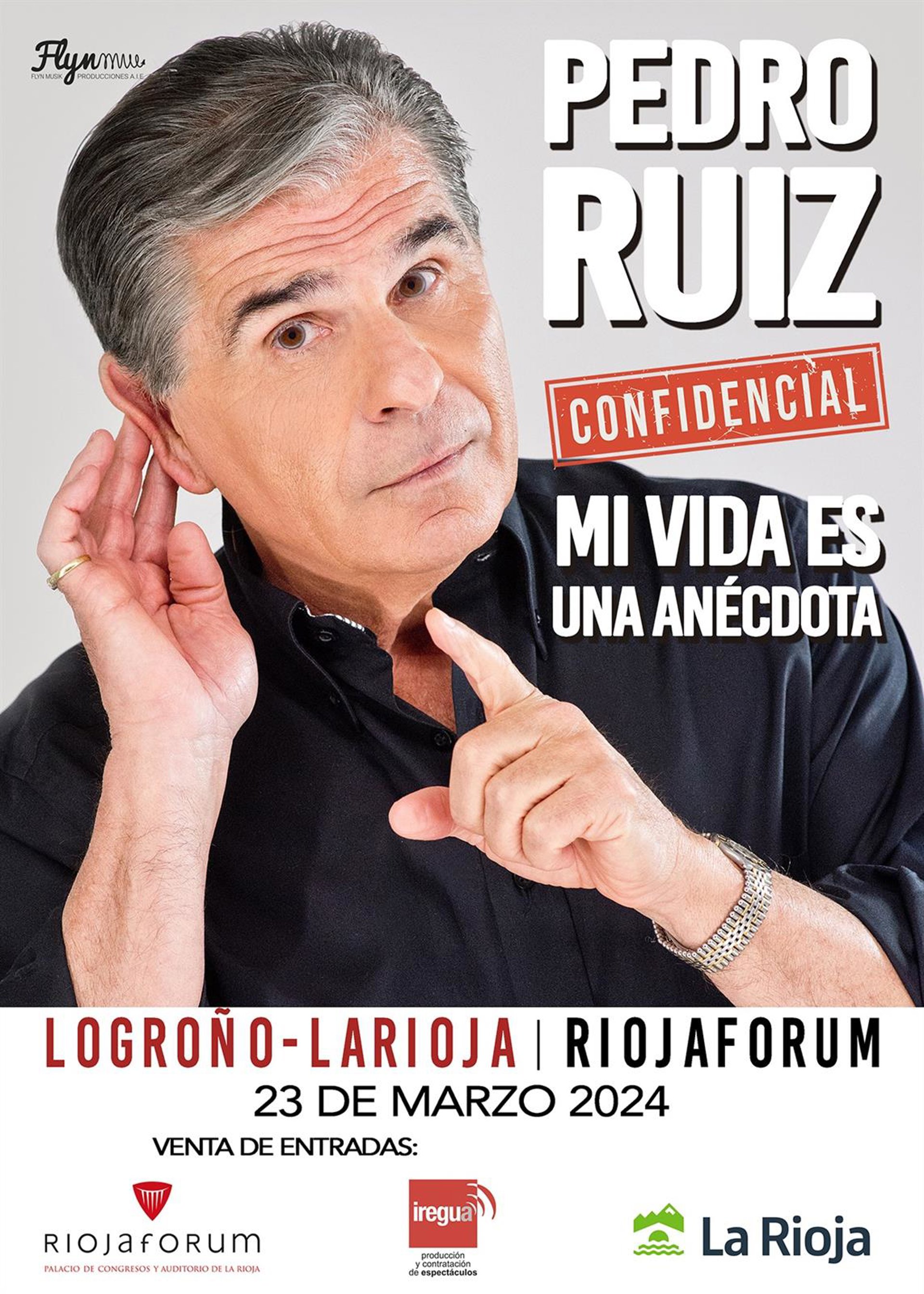 El presentador, actor, escritor, cantante y humorista Pedro Ruiz actuará el próximo 23 de marzo de 2024 a las 20,30 horas en Riojaforum - Palacio de Congresos y Auditorio de La Rioja - con su nueva gira 'Mi vida es una anécdota'.
