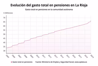 En marzo, el número de pensiones contributivas de la Seguridad Social ascendió en La Rioja a 69.582, un 1,2 por ciento más que en marzo del año pasado, de las que 46.614 eran pensiones de jubilación.