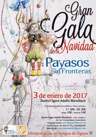 La Gran Gala de Navidad de Payasos Sin Fronteras se celebrará el próximo martes, 3 de enero, en el Teatro Fígaro Adolfo Marsillach de Madrid en dos funciones, una a las 17,30 horas y otra a las 20,30, y contará con la participación del actor riojano Pepe Viyuela, según informan los impulsores del evento.