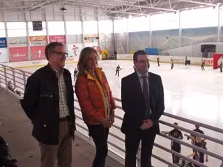 La pista de hielo de Lobete acoge desde hoy los entrenamientos de la Copa de las Naciones de Ballet sobre Hielo. el concejal de Alcaldía y Deportes, Javier Merino, junto con la vicepresidenta de la Federación Española de Deportes de Hielo, Gloria Stefanell, han acudido esta mañana a los entrenamientos no oficiales para el torneo.