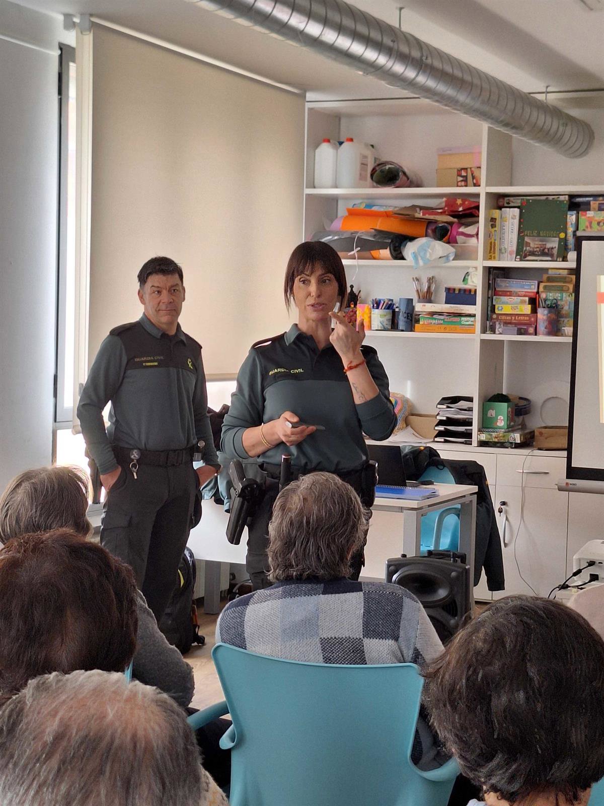 Por su parte, en las sesiones impartidas en las asociaciones del entorno rural, la Guardia Civil se centra en la formación sobre la prevención en los peligros de la seguridad en general, al igual que en los centros de día, así como en ciberseguridad, al hacer uso habitualmente estos asistentes de las nuevas tecnologías y con el fin de prevenir los posibles fraudes y riesgos que pueden afrontar.