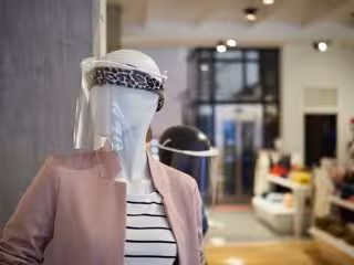 Detalle de unos maniquíes con máscaras de protección en las tiendas de moda "Urban" de Pamplona, - Eduardo Sanz / Europa Press