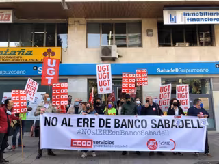 Está mañana la plantilla del Banco Sabadell en La Rioja ha ido a la huelga para protestar contra el ERE planteado por la dirección que afecta a 1.700 personas, un 12 por ciento de la plantilla, un porcentaje que asciende hasta un 21 por ciento en La Rioja.