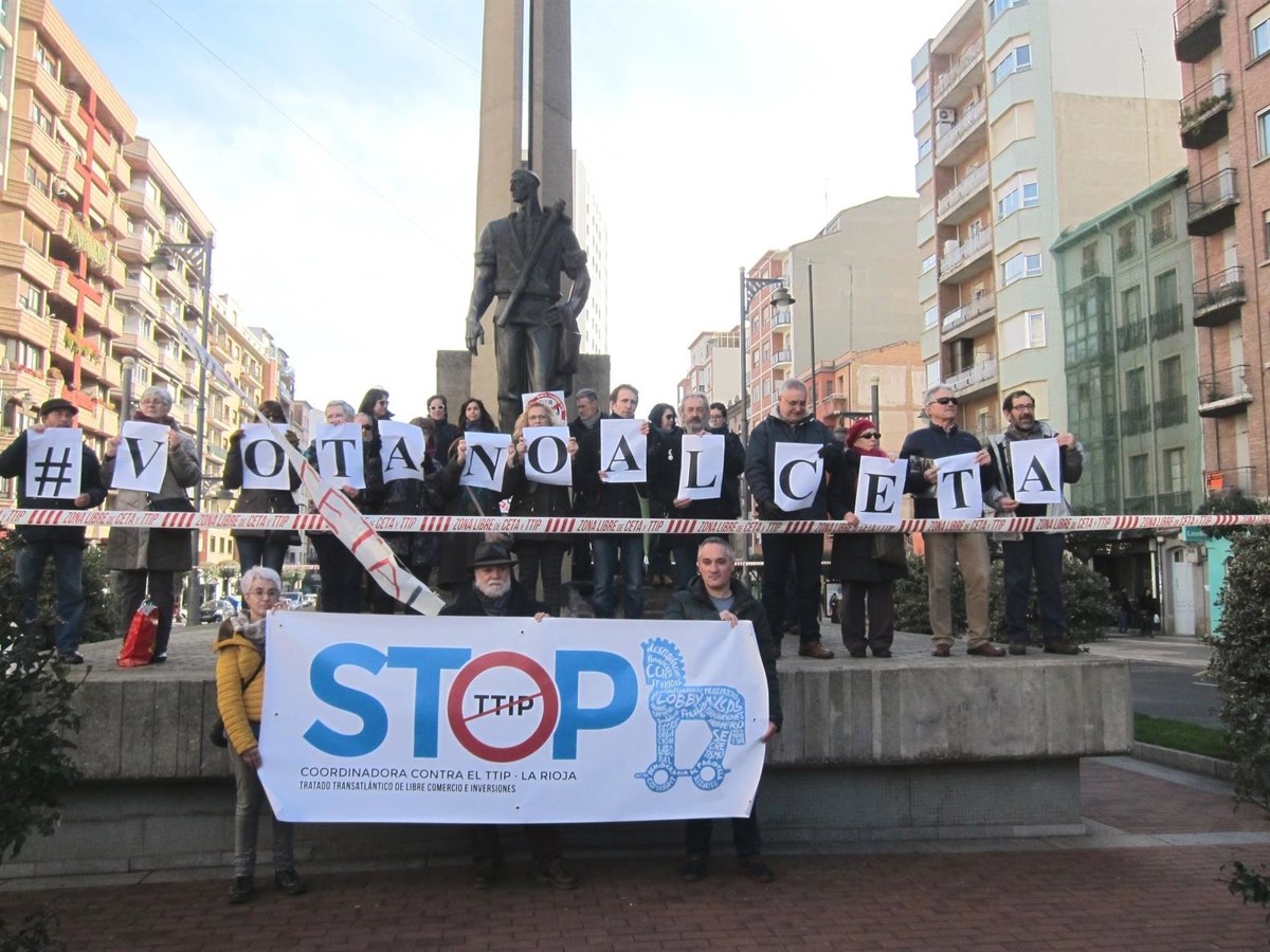 La Plataforma contra el TTIP de La Rioja ha vuelto a salir a la calle este sábado para pedir a los parlamentarios europeos que "voten no" al tratado del CETA porque "va en contra de los derechos de los ciudadanos y del propio planeta" y les han exigido que "defiendan los derechos de la democracia".