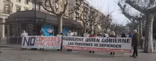 Miembros de la Plataforma Logroñesa para la Defensa del Sistema Público de Pensiones han vuelto a salir a la calle este jueves en contra del "abuso" que suponen las comisiones bancarias así como por el recorte de oficinas y la dificultad de realizar operaciones sin tener medios electrónicos.