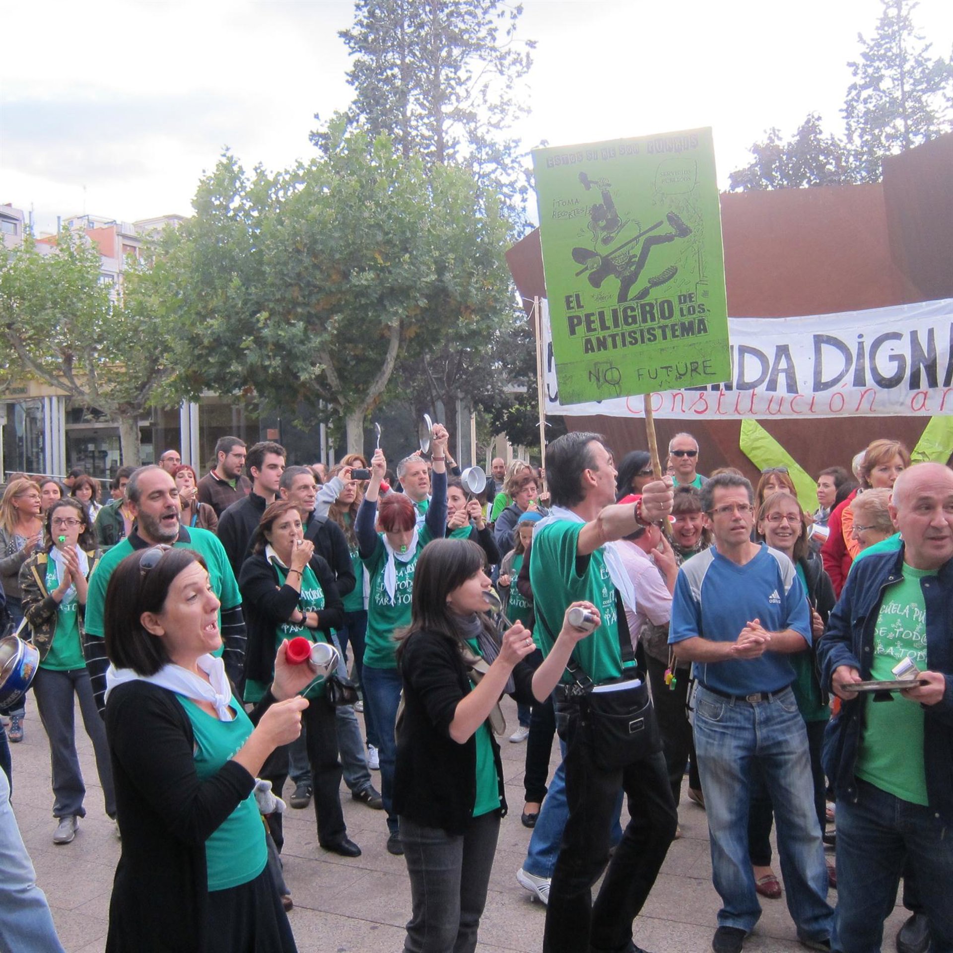 Alrededor de 200 personas se han manifestado en el Paseo del Espolón frente a un fuerte dispositivo policial a favor de la escuela pública y los 'recortes' del gobierno de La Rioja en Educación. Mikel Bujanda, en calidad de portavoz, le ha dicho a los políticos que "van a tener que ceder".