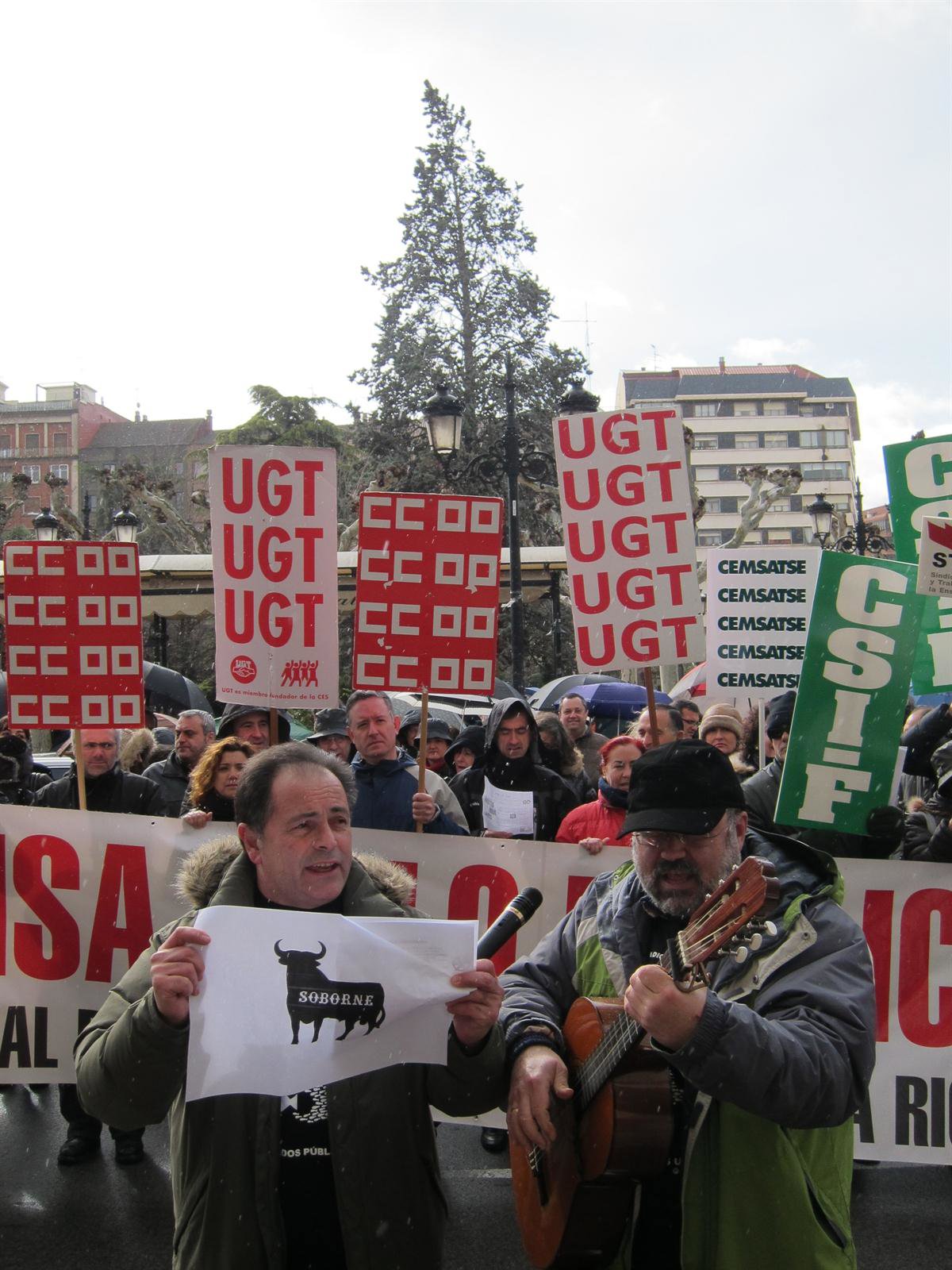En esta ocasión, la protesta se ha realizado a base de chirigotas dirigidas a los miembros de los Gobiernos central y autonómico. Así, tras una pancarta en la que se podía leer 'En defensa de lo Público', los integrantes (miembros de UGT, CCOO, CSIF, STAR, USO, STE RIOJA, USAE y CEMSATSE) han cantado estrofas como "¡No me pienso conformar!", "Mi dignidad no está en venta" o "Es el que rompe el que debe pagar".