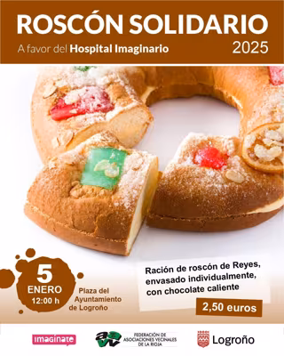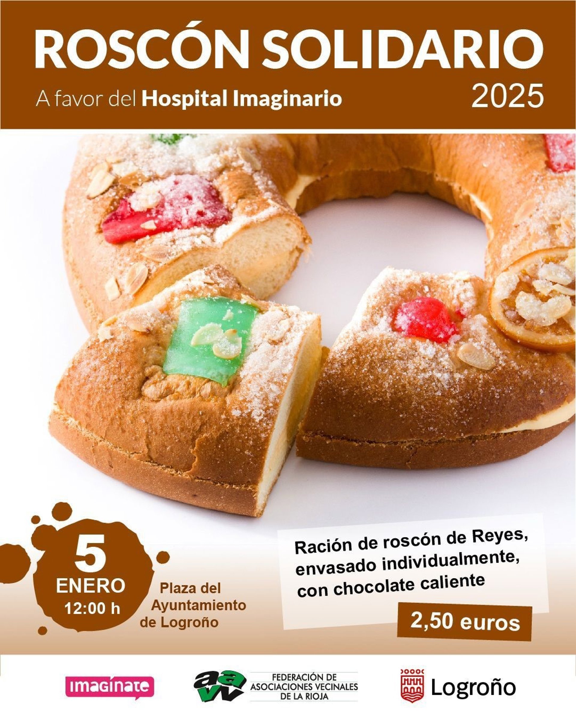 La Plaza del Ayuntamiento de Logroño acogerá este domingo, 5 de enero, el tradicional 'Roscón Solidario', una actividad organizada por la Federación de Asociaciones Vecinales de La Rioja con la colaboración del Ayuntamiento de Logroño.