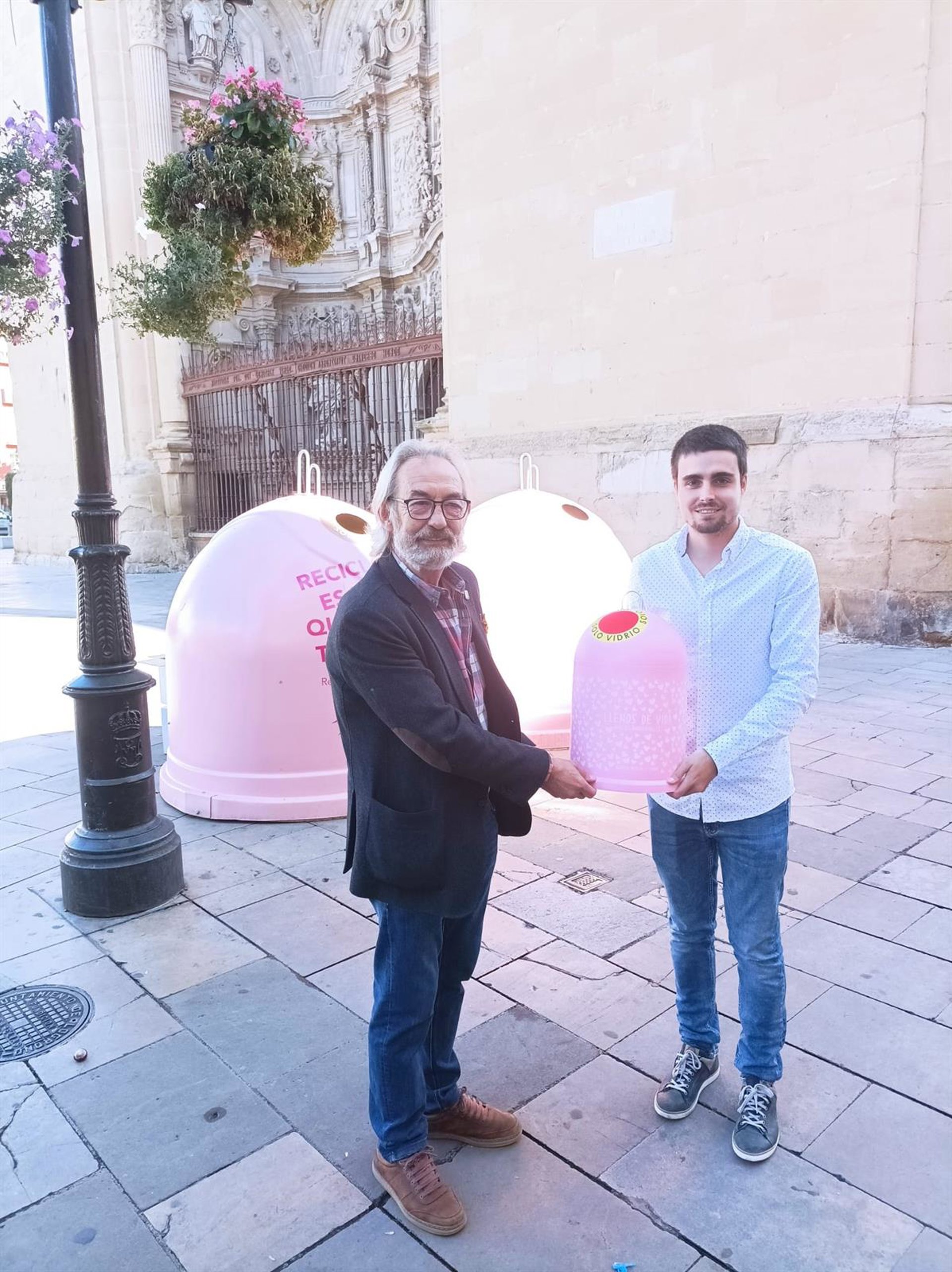 La Plaza del Mercado acoge dos contenedores rosas de la campaña 'Recicla vidrio por ellas', en el Día del Cáncer de Mama. El concejal de Medio Ambiente, José Manuel Zúñiga, y el técnico de gerencia de la zona norte de Ecovidrio, Jon Ruiz de Sabando, han presentado esta mañana la campaña que pretende movilizar a la ciudadanía a reciclar envases de vidrio para cuidar del medioambiente y contribuir en favor de la prevención e investigación de esta enfermedad.