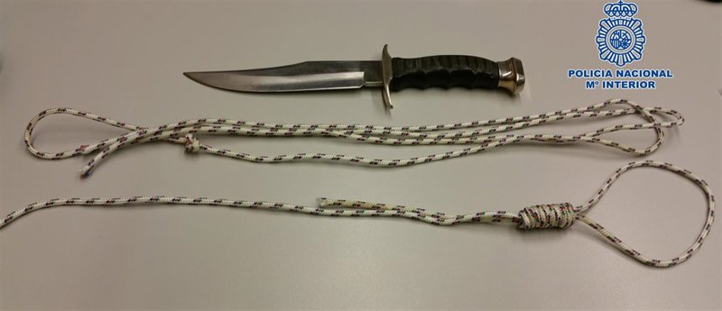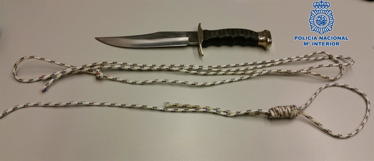 Una vez en el lugar, pudieron observar como un hombre de mediana edad y en gran estado de agitación, se encontraba sentado sobre una de las barandillas de la pasarela, con una soga atada al cuello y a una farola, portando un cuchillo de monte de grandes dimensiones.