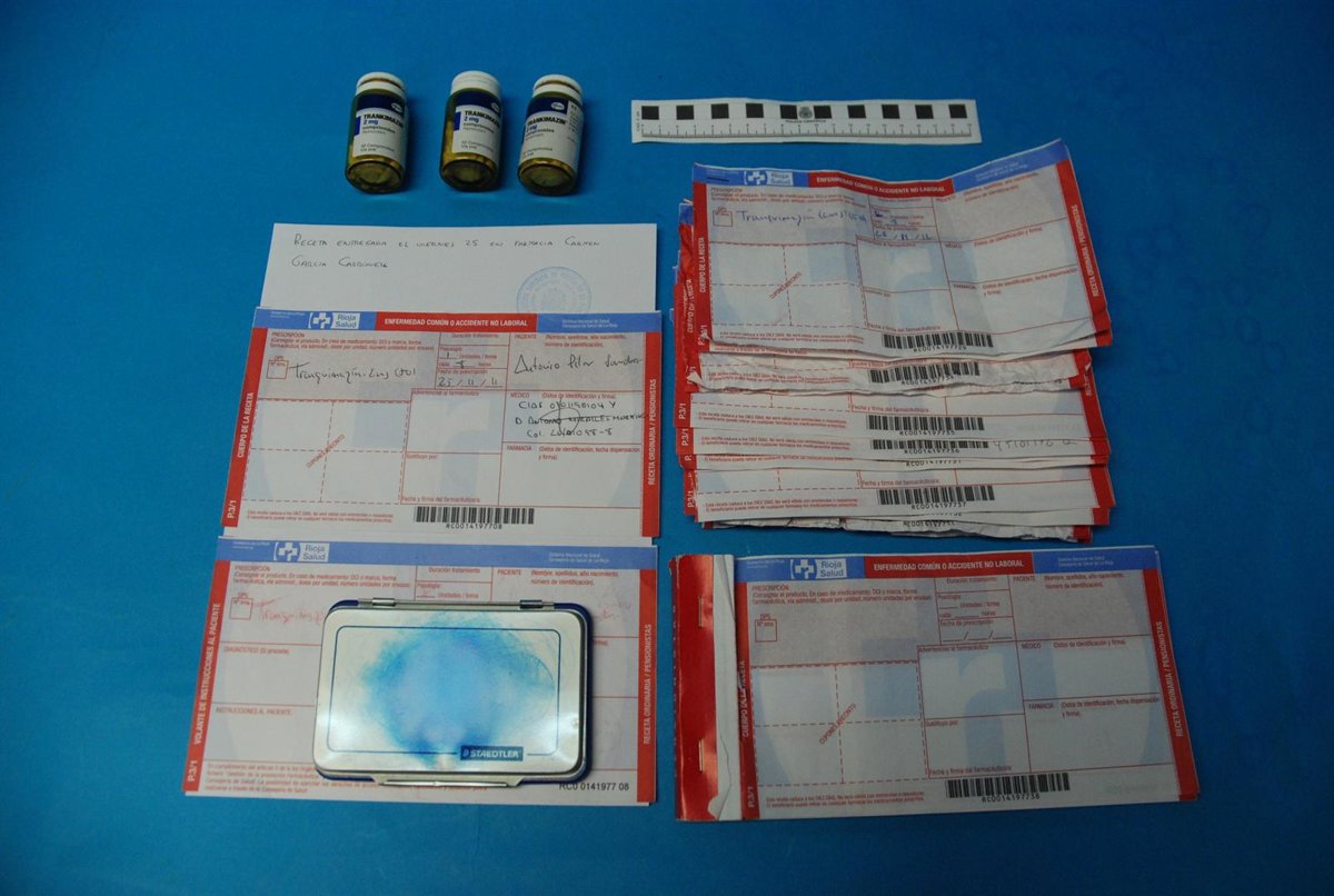 Como resultado de esta operación policial se pudo recuperar 65 recetas médicas sustraídas, doce de ellas cumplimentadas para ser presentadas en farmacias y 139 comprimidos de 'Trankimazin', procediendo a la detención de dos hombres españoles.
