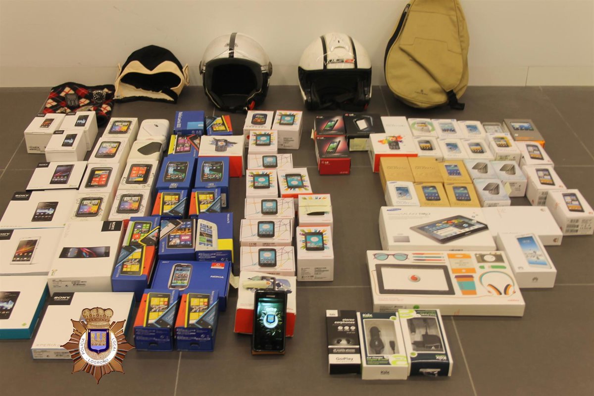 Agentes de la Policía Local han detenido esta pasada madrugada, en el centro de Logroño, a cuatro jóvenes que acababan de robar en una tienda de telefonía situada en la esquina de Gran Vía con Guardia Civil. En la operación se han podido recuperar 72 móviles, 2 tablets y otros efectos sustraídos del establecimiento.