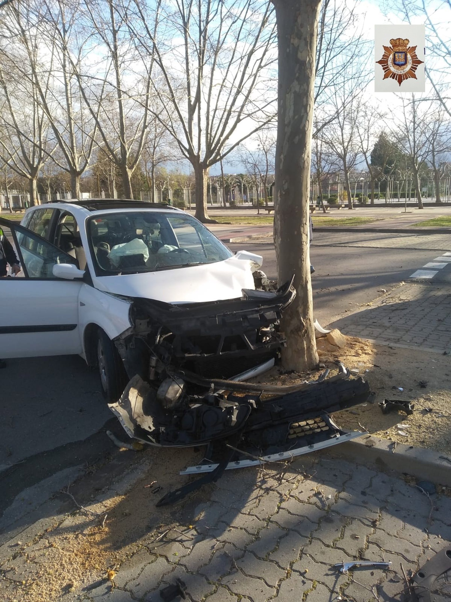 Los hechos sucedieron en la tarde de ayer en un parking público de la zona norte de Logroño, en el que el conductor estaba haciendo trompos y circulando en contradirección, lo que propició que sufriese una fuerte colisión contra un árbol.