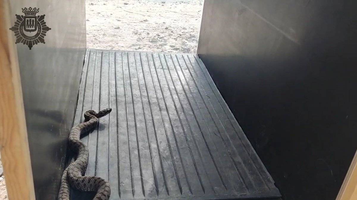 El Grupo Ecológico de la Policía Local capturó al reptil, de unos cincuenta centímetros de longitud, que por sus características puede tratarse de una víbora aspid. Posteriormente fue devuelta a un entorno natural alejado del casco urbano.