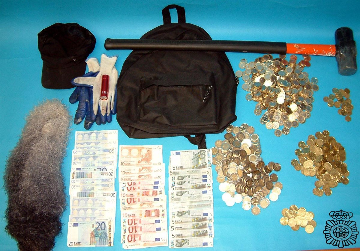 Una vez que fue alcanzado por los agentes de policía, se pudo comprobar como el hombre, que vestía completamente de negro, con la cara tapada y usando guantes, había accedido al bar, fracturando con la maza intervenida uno de los cristales de la parte trasera del establecimiento, donde igualmente había forzado las dos maquinas tragaperras que se encontraban en el mismo.